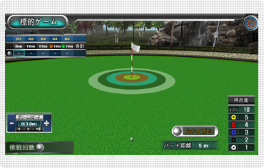 1名~4名で5つのパターンに挑戦。カップへの近さに応じて点数が自動計算され、逆転につぐ逆転で楽しめます。