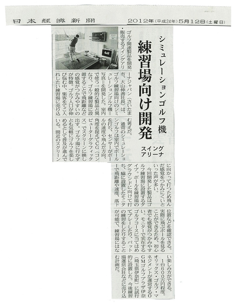 5/25(金) 『ワールドビジネスサテライト(テレビ東京)』 内の新製品紹介コーナー "トレンドたまご " にて屋外ゴルフ練習場専用のゴルフシミュレーターをご紹介頂きました。